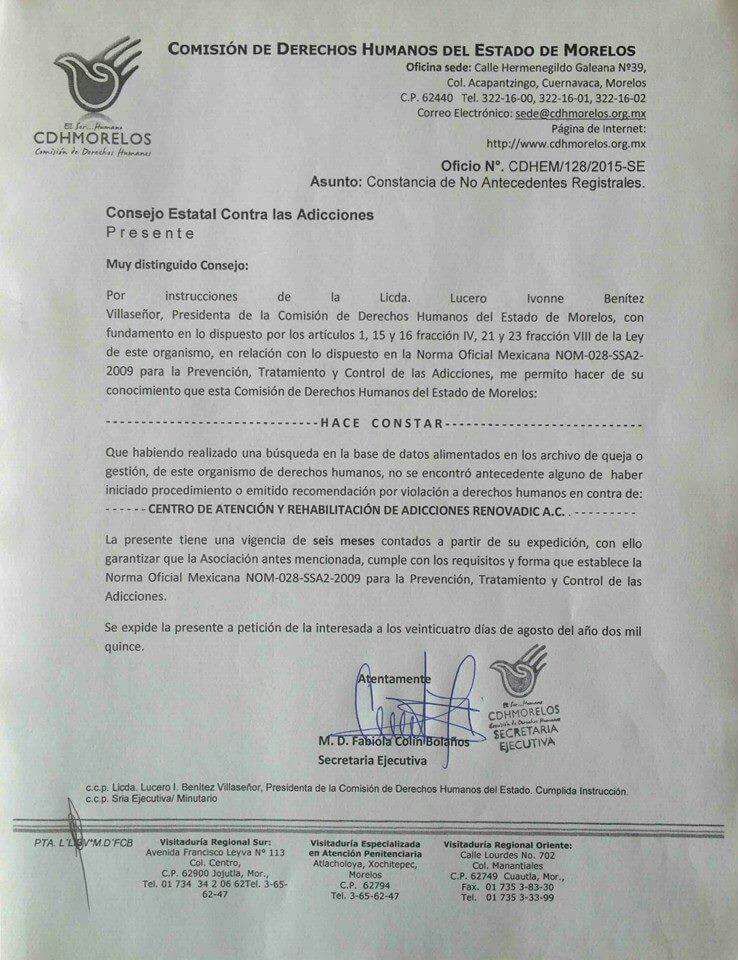 Una vez que se realiza el ingreso, el usuario de RENOVADIC recibirá la atención médica y psicológica necesaria para iniciar su tratamiento psicológico. Con el objetivo de re-establecer físicamente al usuario para poder ingresarlo paulatinamente a sus sesiones terapéuticas, en las cuales el recibirá las herramientas necesarias para cambiar su comportamiento adictivo mejorar la calidad de vida del usuario y su familia.