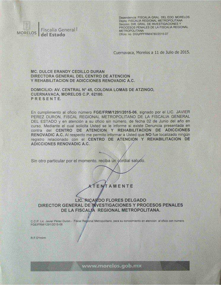 En estos casos, RENOVADIC cuenta con un equipo profesional para intervenir previamente y que se lleve a cabo de manera voluntaria. RENOVADIC hace un esfuerzo importante porque el familiar concientice sobre su problemática y así poder realizar su tratamiento de manera adecuada.